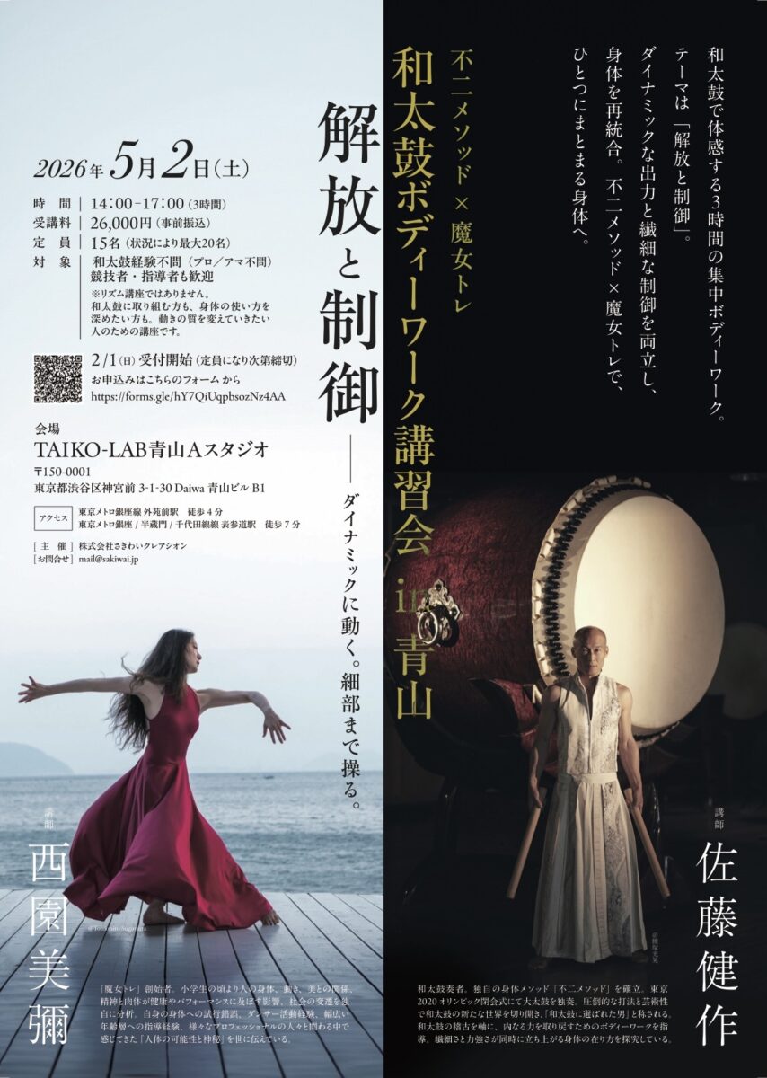 和太鼓に取り組む方も、身体の使い方を深めたい方も。